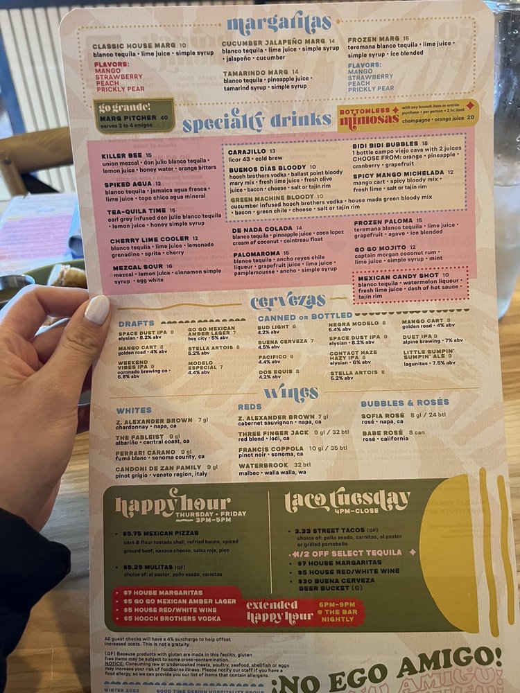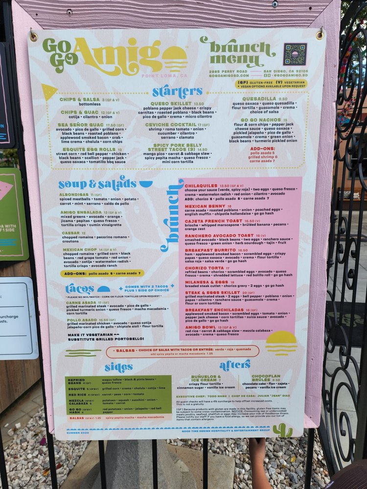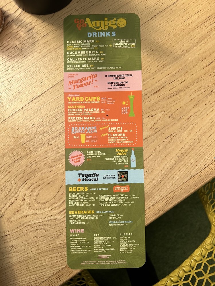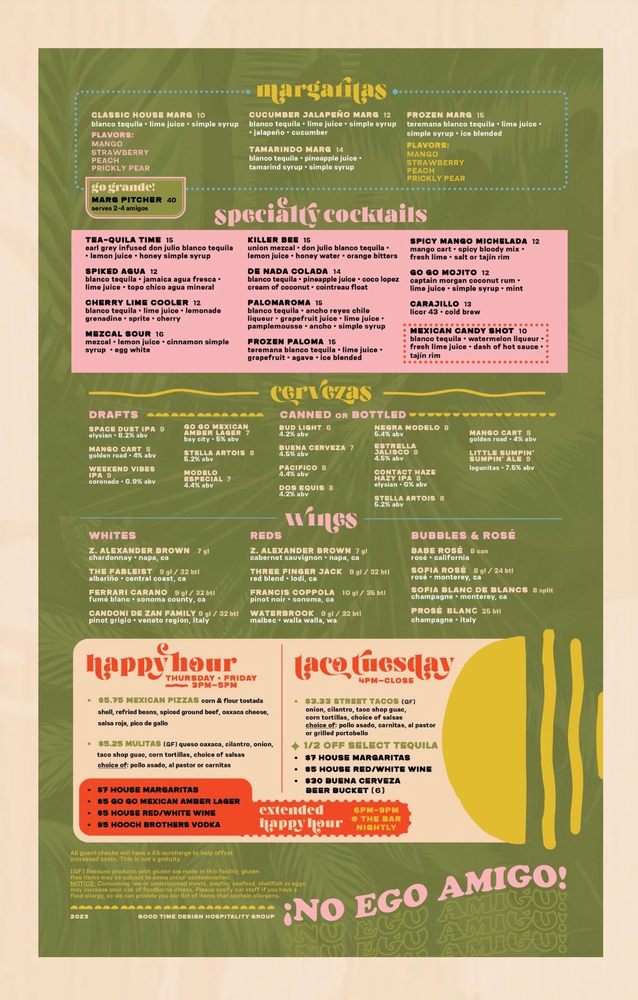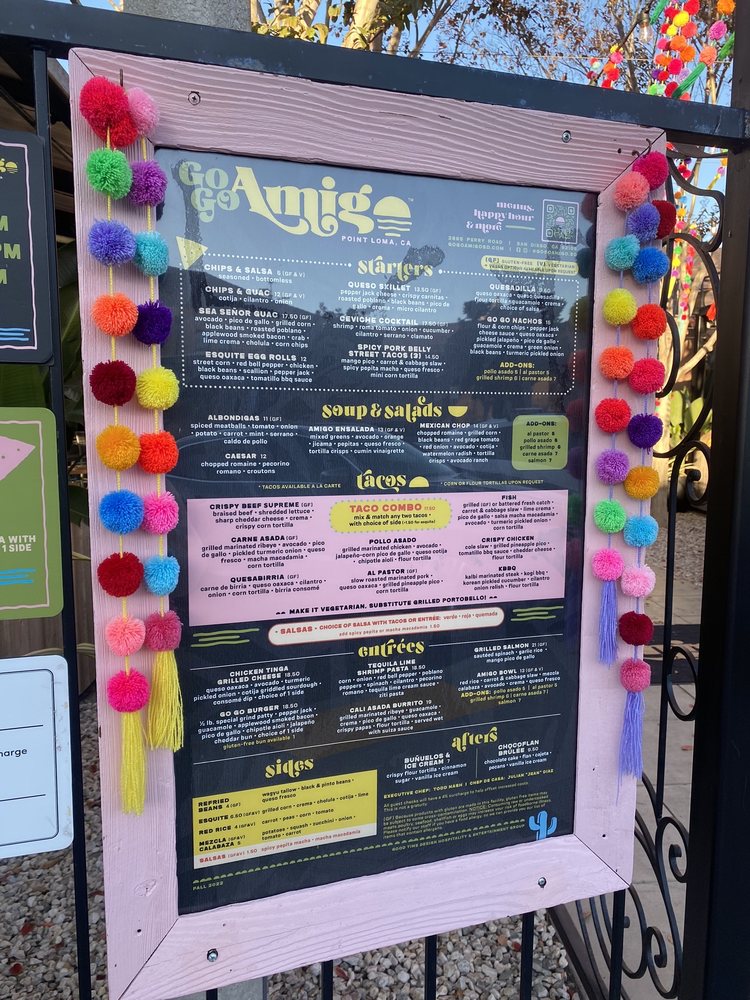 Introducing the menu at Go Go Amigo, located in San Diego, CA, a casual and trendy spot offering a variety of options for foodies. This restaurant provides a unique dining experience with features like reservation options, takeout, delivery, and a variety of menu items suitable for pescatarians and vegans. With a full bar, happy hour specials, and a relaxed ambiance, Go Go Amigo appeals to a diverse crowd. Customers rave about the quick service, delicious drinks like the pineapple and strawberry margaritas, and tasty dishes like loaded nacho fries. The self-serve ordering system adds convenience, while the vibrant atmosphere and friendly staff make for a memorable dining experience. Whether you're looking for a fun night out or a casual meal with loved ones, Go Go Amigo promises a great time with good food and chill vibes.