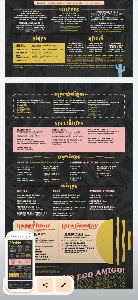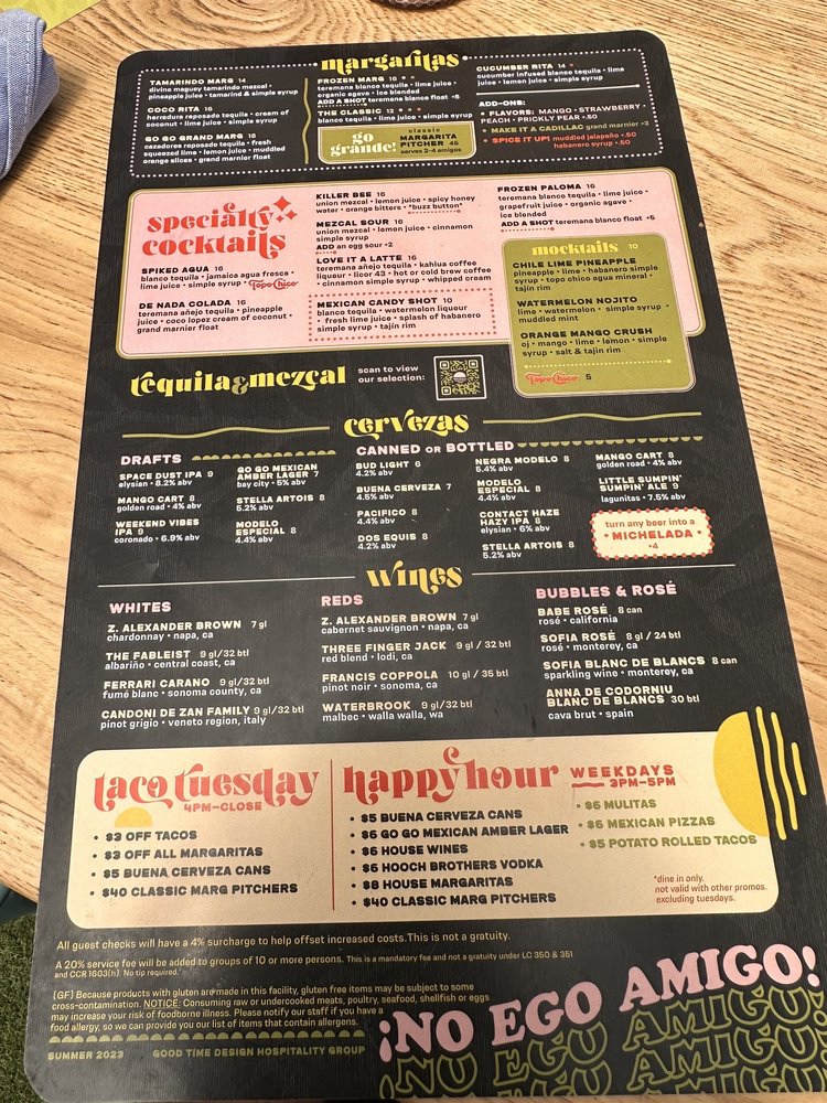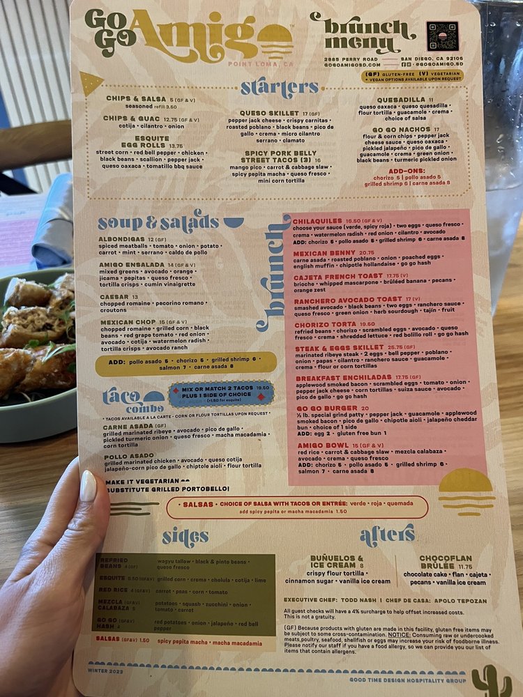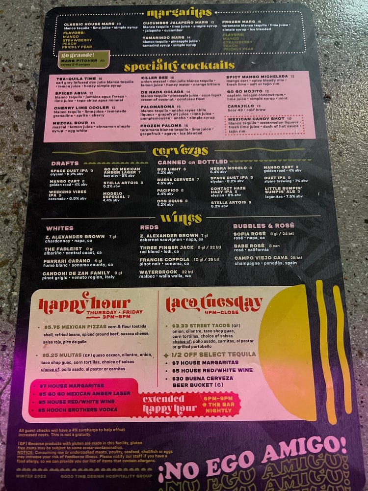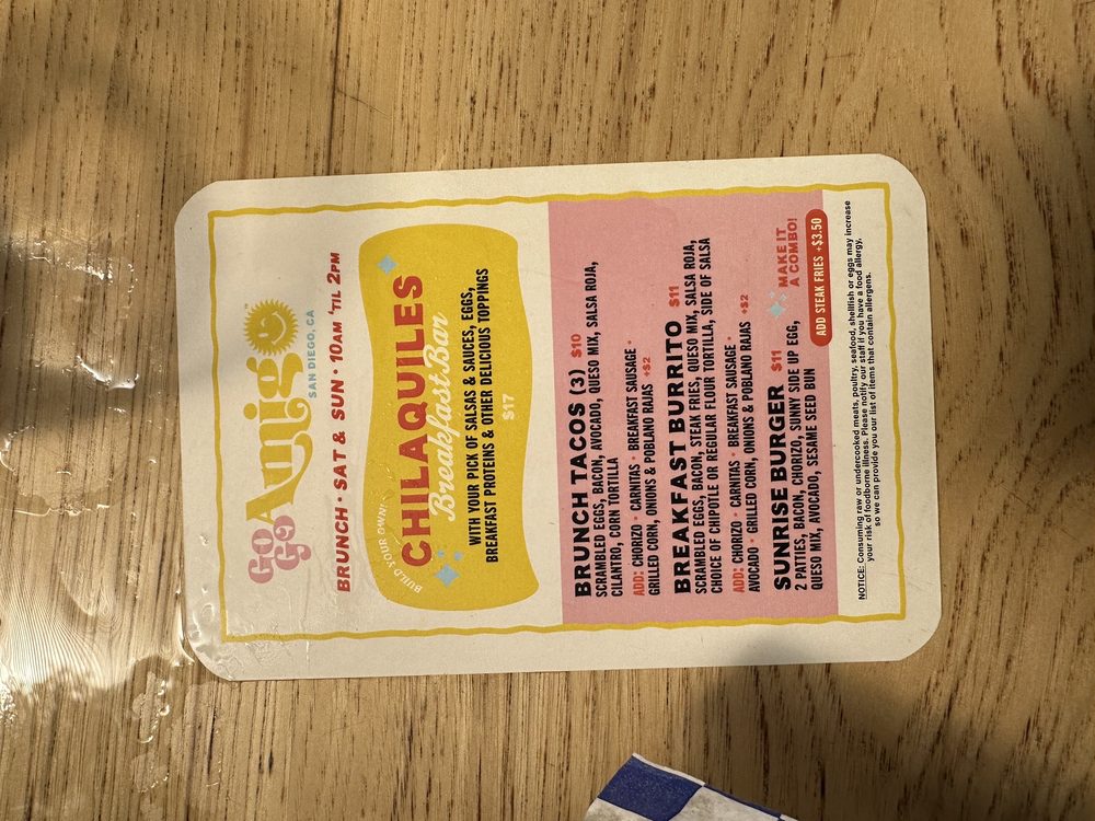 Introducing the menu at Go Go Amigo, located in San Diego, CA, a casual and trendy spot offering a variety of options for foodies. This restaurant provides a unique dining experience with features like reservation options, takeout, delivery, and a variety of menu items suitable for pescatarians and vegans. With a full bar, happy hour specials, and a relaxed ambiance, Go Go Amigo appeals to a diverse crowd. Customers rave about the quick service, delicious drinks like the pineapple and strawberry margaritas, and tasty dishes like loaded nacho fries. The self-serve ordering system adds convenience, while the vibrant atmosphere and friendly staff make for a memorable dining experience. Whether you're looking for a fun night out or a casual meal with loved ones, Go Go Amigo promises a great time with good food and chill vibes.